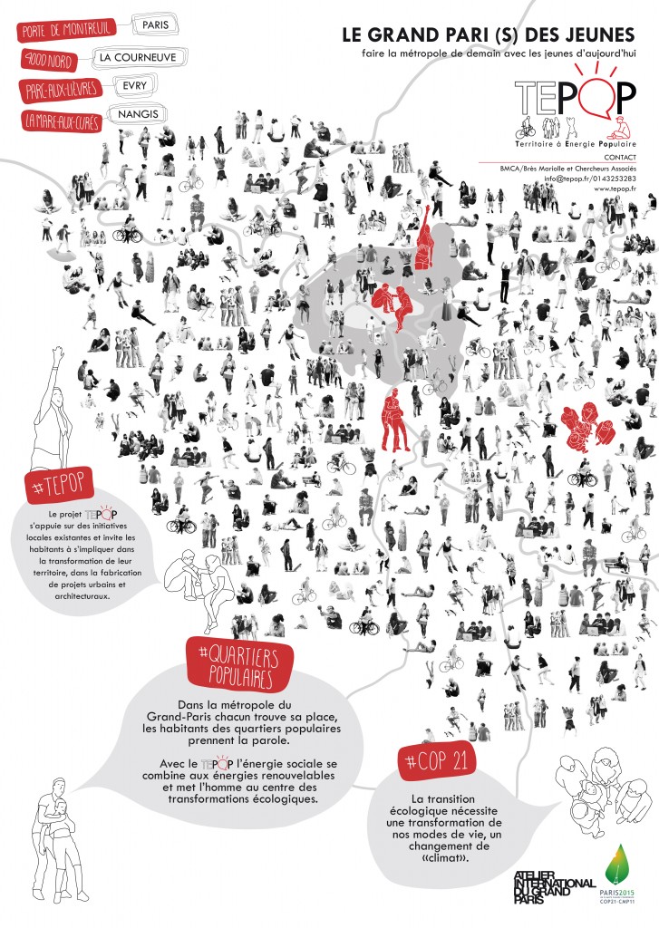 La finalité du projet TEPOP est de questionner les outils de fabrication des projets, d’être à l’écoute des multiples modes d’habiter la métropole. C’est le pari que le renouvellement des formes de débats permet d’innover dans les propositions, d’inventer des formes de coopération entre les populations. Des hypothèses à la fois concrètes et radicales émergeront et permettront de penser autrement la transition écologique.