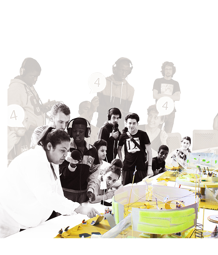 Nous avons ensuite organisé des ateliers pour aider les jeunes à faire des propositions pour le Grand Paris. Ils ne sont pas experts de l’urbanisme et de l’architecture mais ils connaissent leur quartier et savent exprimer leurs idées. Nous les aidons à les concrétiser, à les concrétiser en maquette.