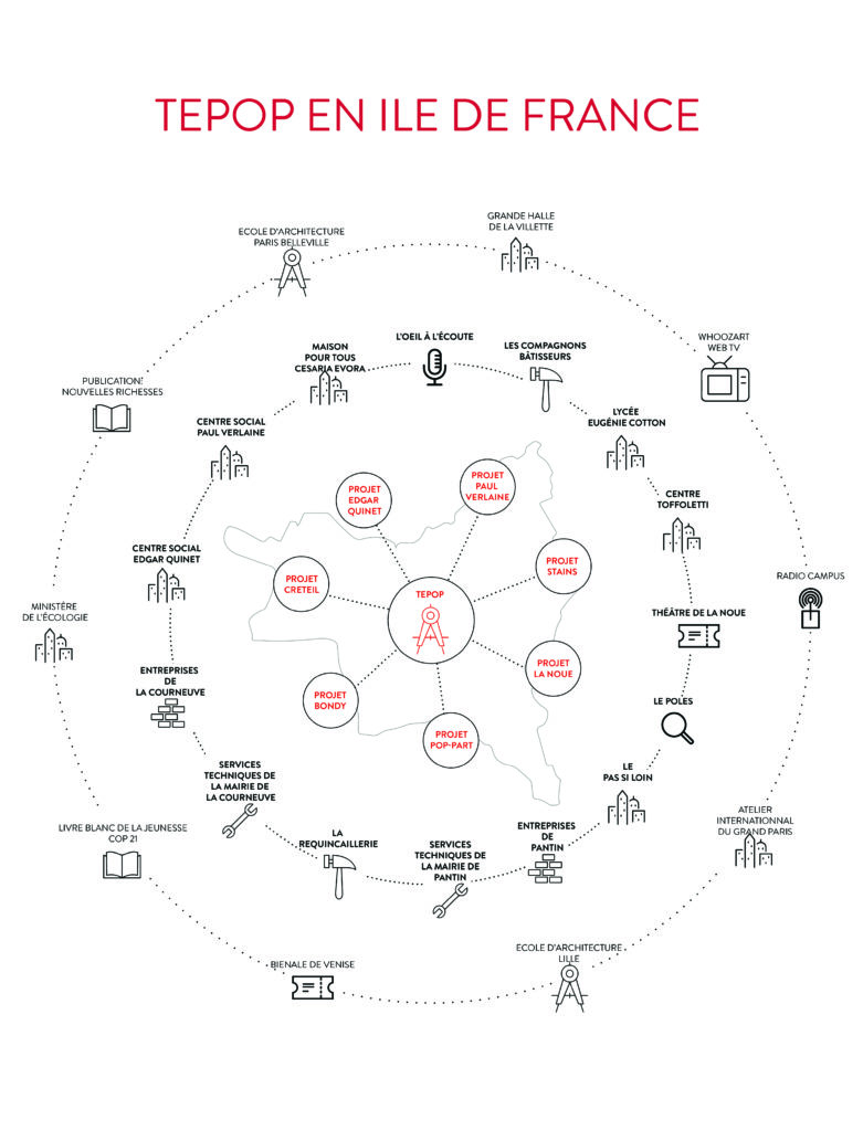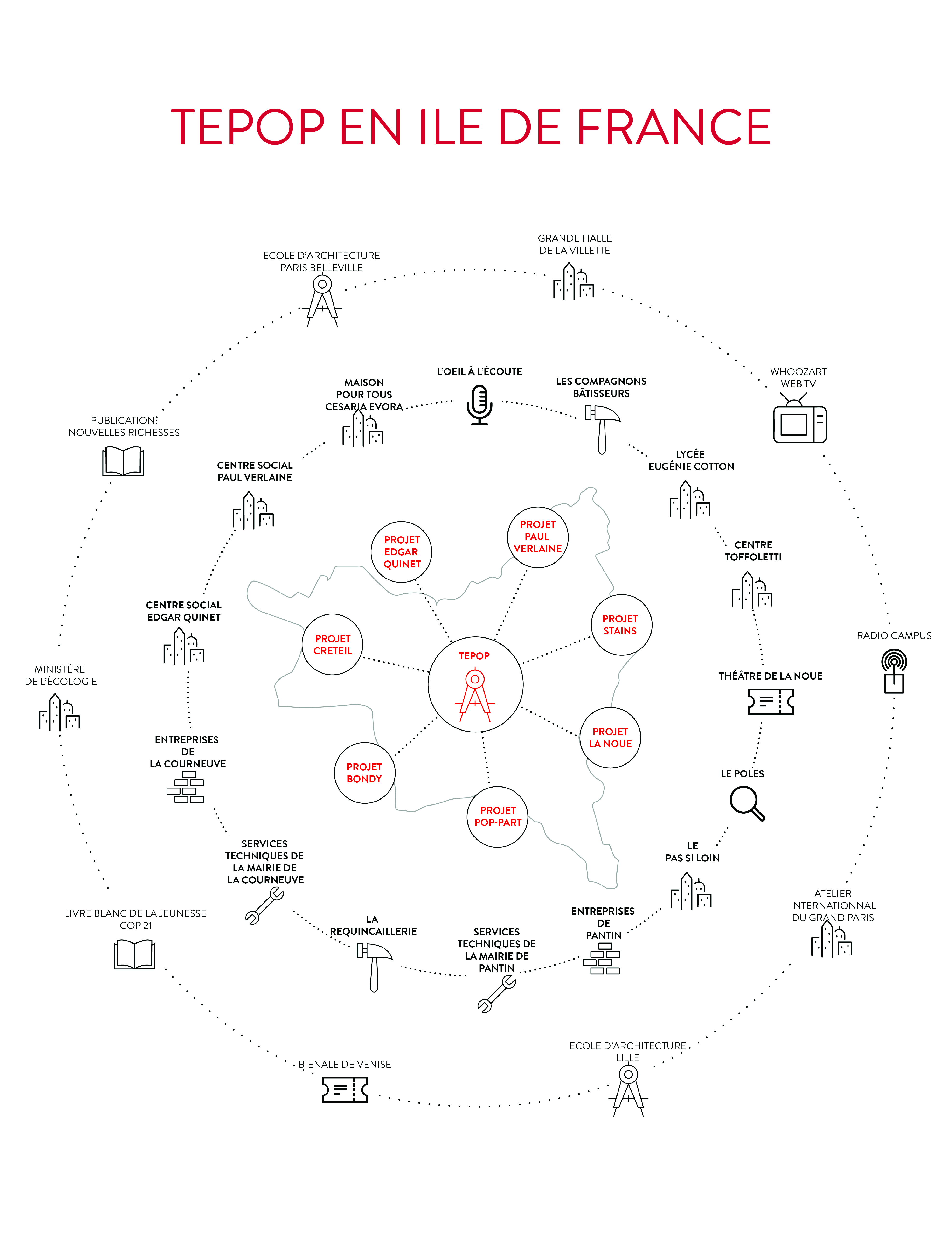 TEPOP (Territoire à Energie Populaire), est une association crée en 2015, qui rassemble des architectes, des urbanistes, des sociologues, des artistes, des chercheurs et beaucoup d’étudiants pour conduire des projets collectifs et écologiques de transformation du territoire.